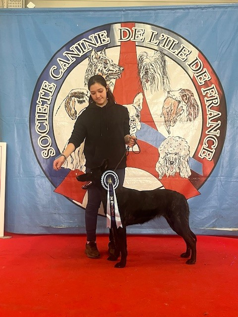 Tête bien proportionnée, belle expression faciale. Couleur très sombre. Ligne de dos régulière. Excellente construction morphologique. Allures à travailler (sol un peu glissant). Caractère super sympa. Excellents aplombs à l avant et à l arrière. Vaya a terminé 2 sur 3 avec la mention Excellent. Malgré 2h30 de retard de la juge, je suis très fière de ma chienne et de son passage.